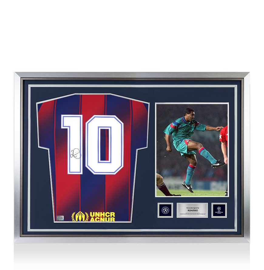 UEFA Champions League firmada y camisas enmarcadas de héroe