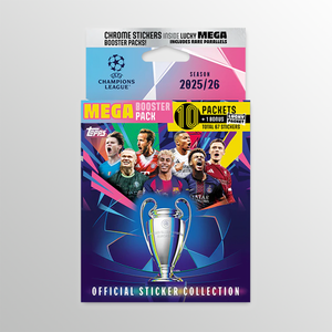 The official UEFA Champions League Sticker Collection 2025/26 features all 36 teams across 574 stickers to collect and house inside an amazing 76-page album. Sticker Categories include Leading Legacies, Energy Legends, Team of the Season, Hat Trick Heroes plus many more. With unnumbered parallels of all squad portraits, incredible Jersey Worn Relic sticker cards inside lucky Starter Packs, '1st' Stickers including Chrome numbered parallels plus every Full Box contains a Hero Pack of six shiny stickers, there are so many exciting features to discover in this collection.